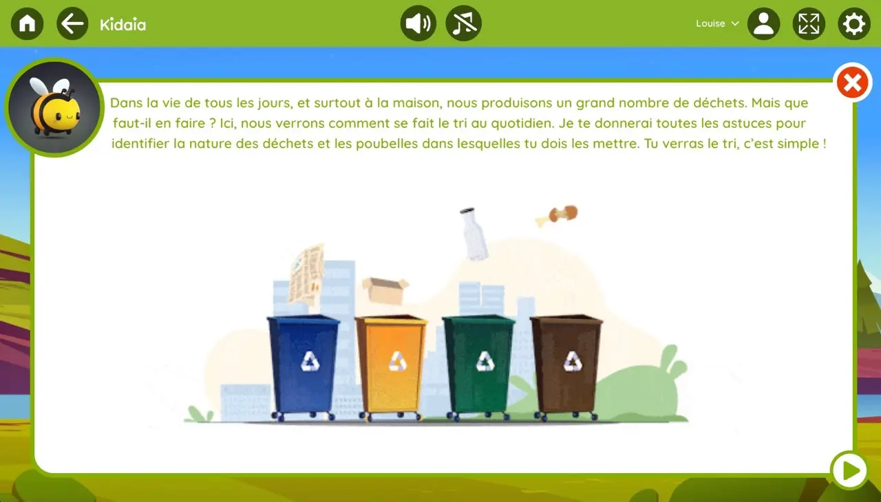 Faites de l’apprentissage de l’écologie de votre enfant une aventure amusante. À travers des scénarios interactifs, il apprend d’où proviennent les aliments qu’il consomme, pourquoi trier ses déchets ou encore comment économiser l’eau… KIDAIA l’invite à explorer sa région, reconnaître la biodiversité qui l’entoure et comprendre l’importance des initiatives de protection de l’environnement. Chaque mission accomplie renforce son engagement envers la planète et le motive pour intégrer les gestes de développement durable dans ses habitudes.